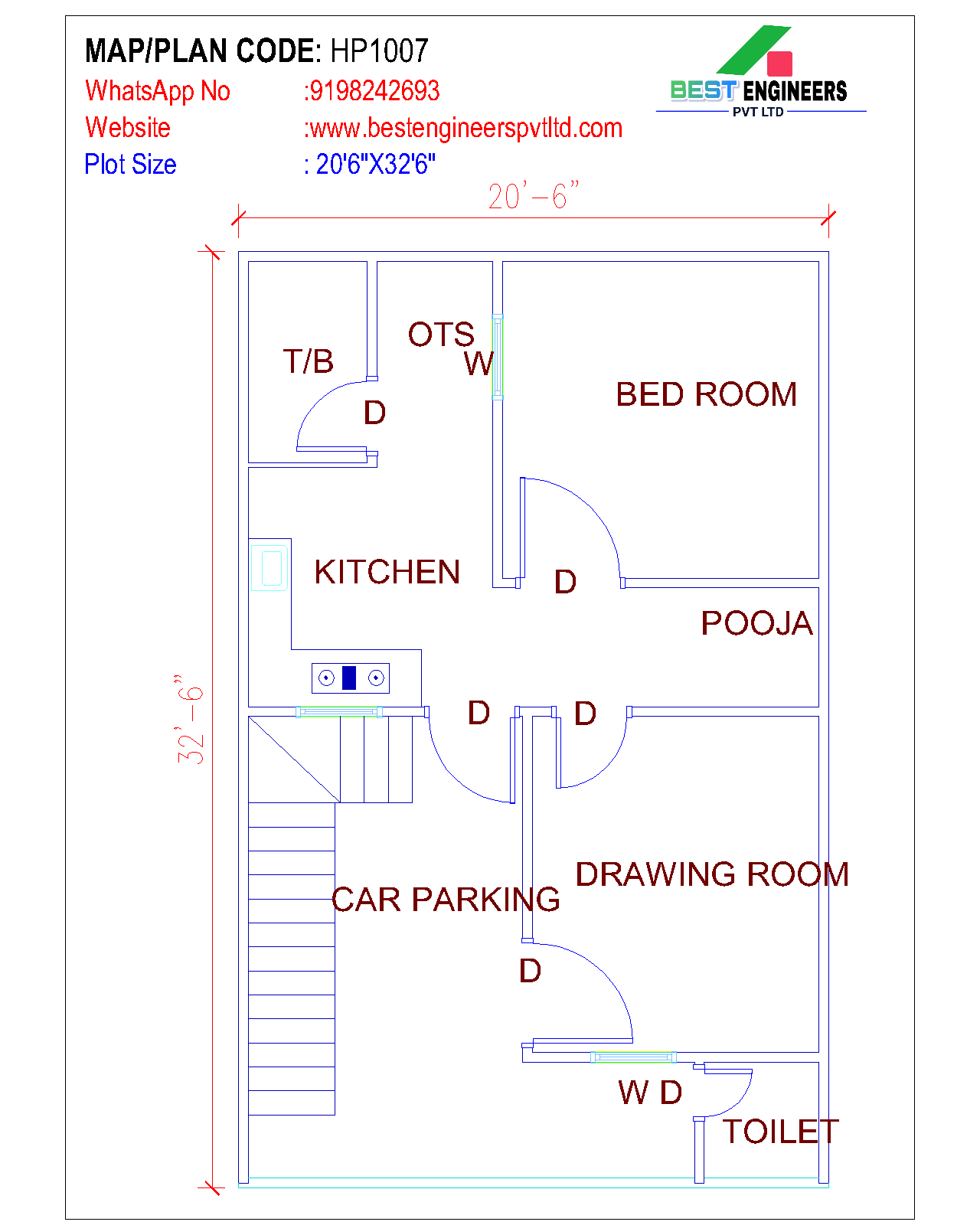 666 Sq. Ft. Modern Home Design | 20'6" X 32'6" House Design with 2BHK
