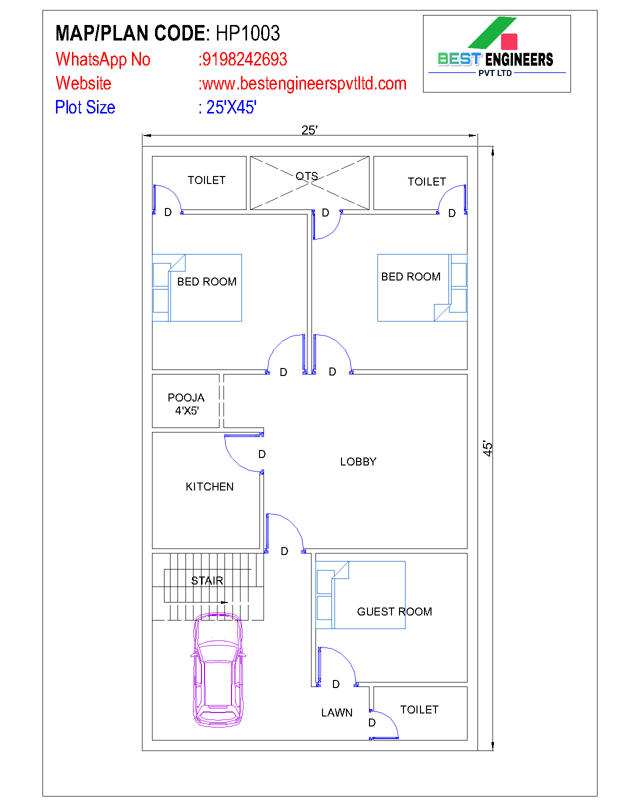 25x45 house plan | 25 by 45 floor plan1125 sq ft house design