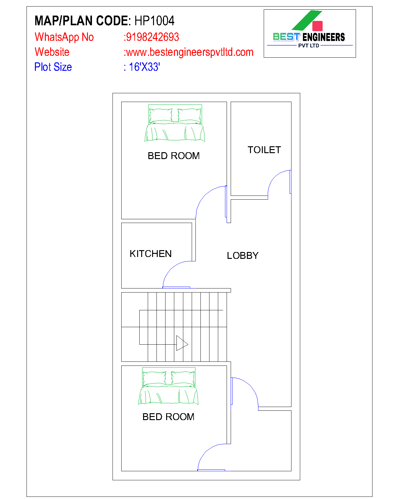 Modern 16×33 House Plan: Smart Living in 528 Sq. Ft